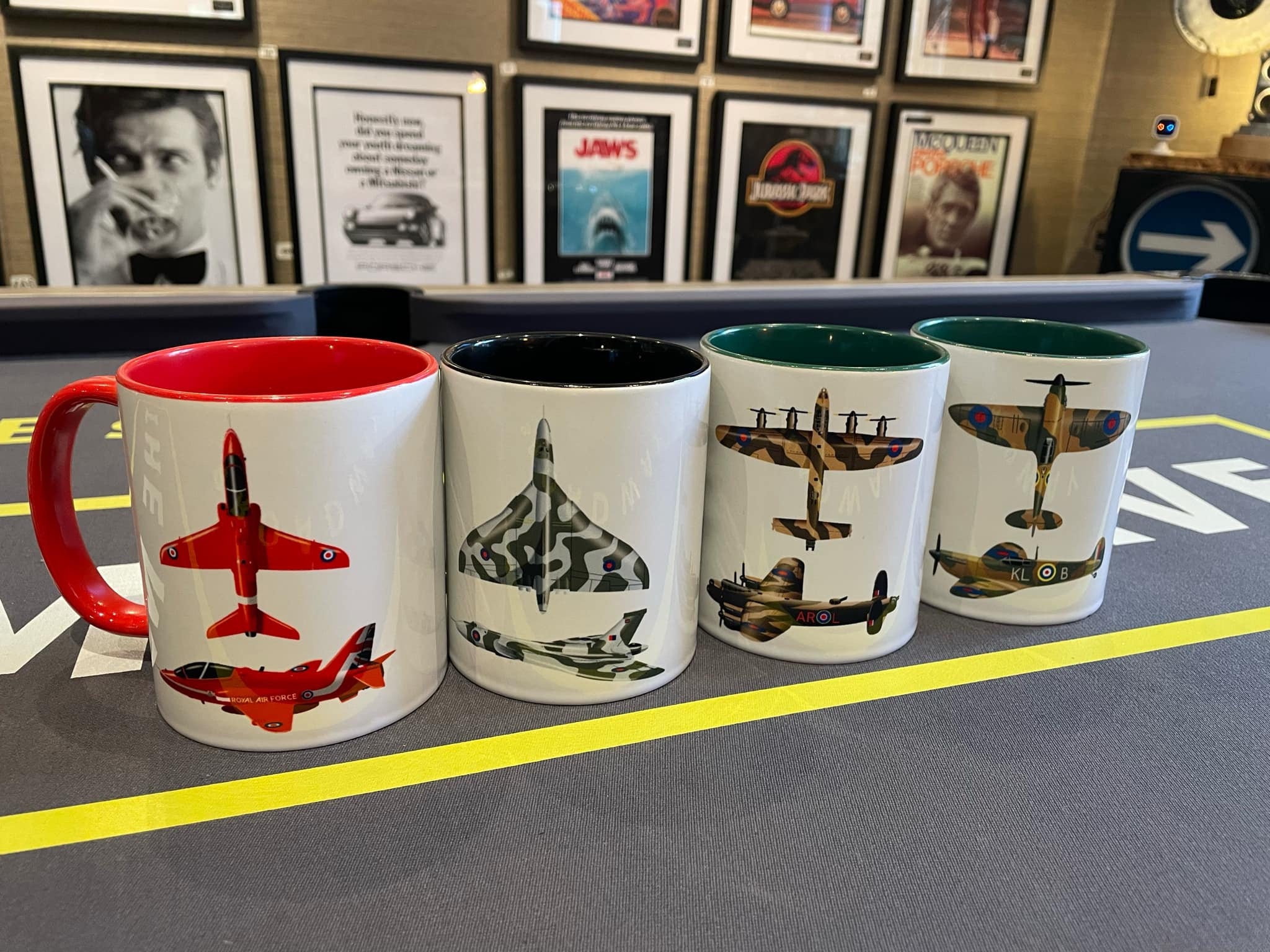 Discover the fascinating world of aviation with this top-quality mug showcasing iconic aircrafts including the VULCAN, SPITFIRE, LANCASTER, and RED ARROWS.