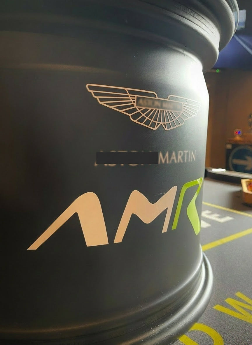 A stunning piece of furniture created using a race used wheel from an Aston Martin GTE race car, complete with Aston Martin Racing decals applied to 1 side and 24 Le Mans to the other. A toughened glass 50cm diameter top is supplied along with rubber glass protectors and complete with wings decal too