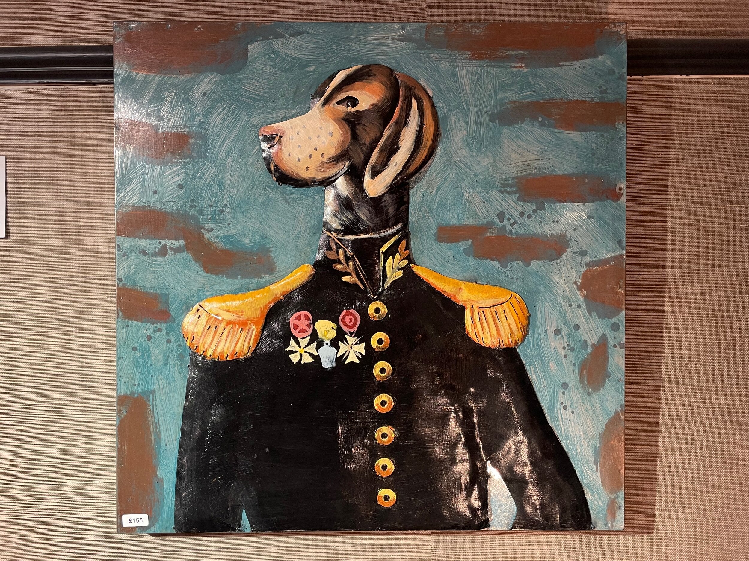 Hand crafted and hand painted metal artwork we call Colonel Dog!