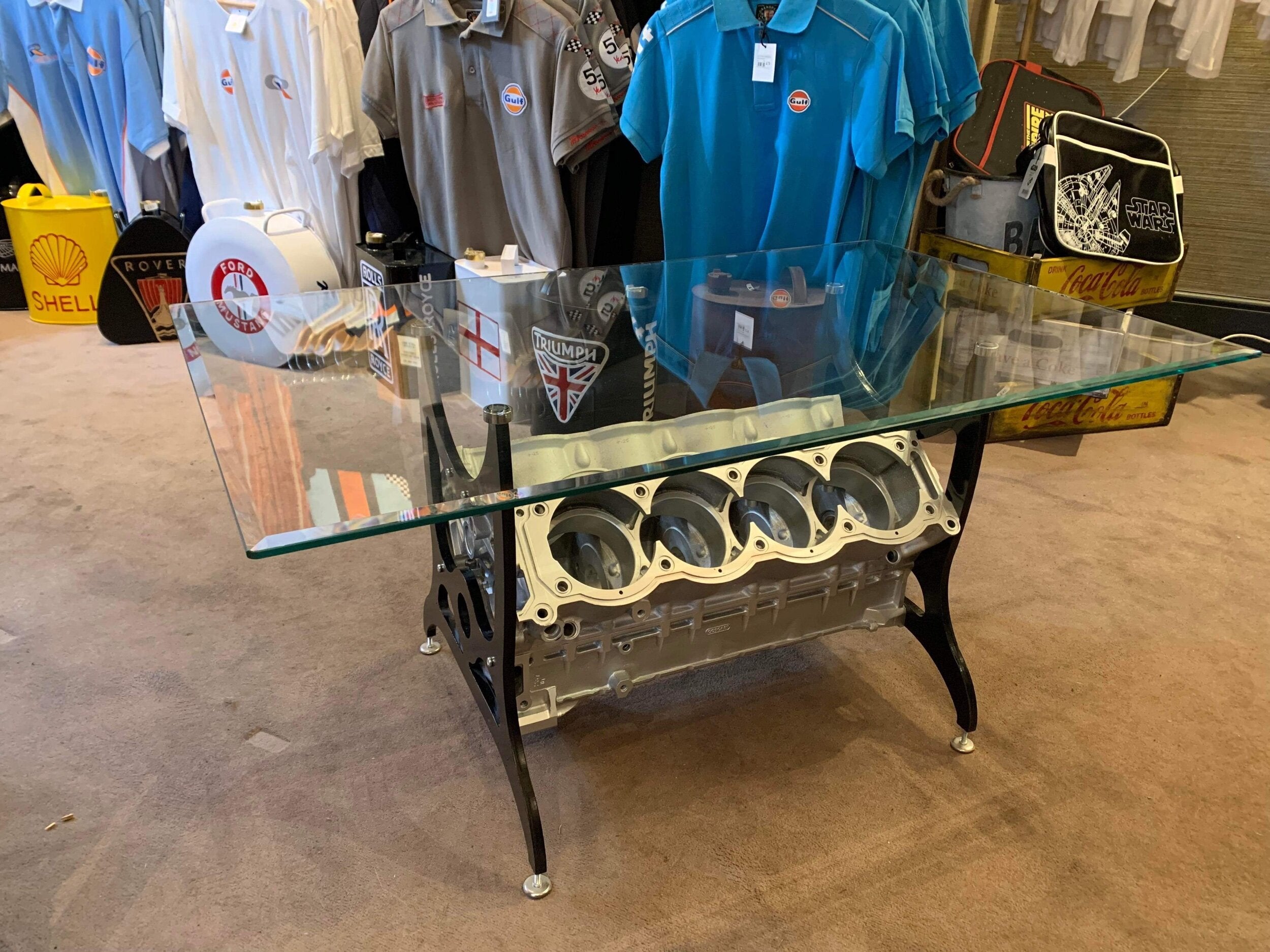 How incredibly cool is this! Created from a 90’s XB Cosworth V8 engine block like the one used by Jacques Villeneuve in the photograph (pic for example).