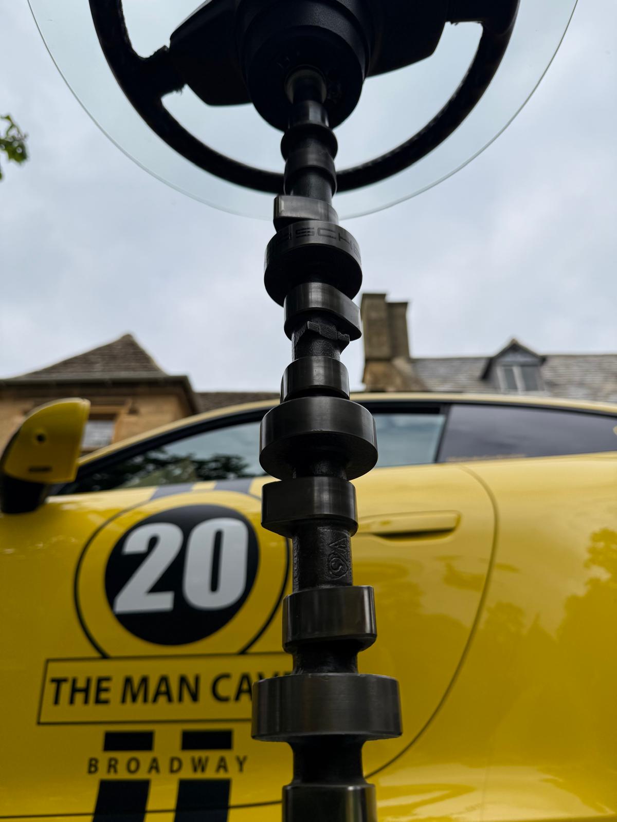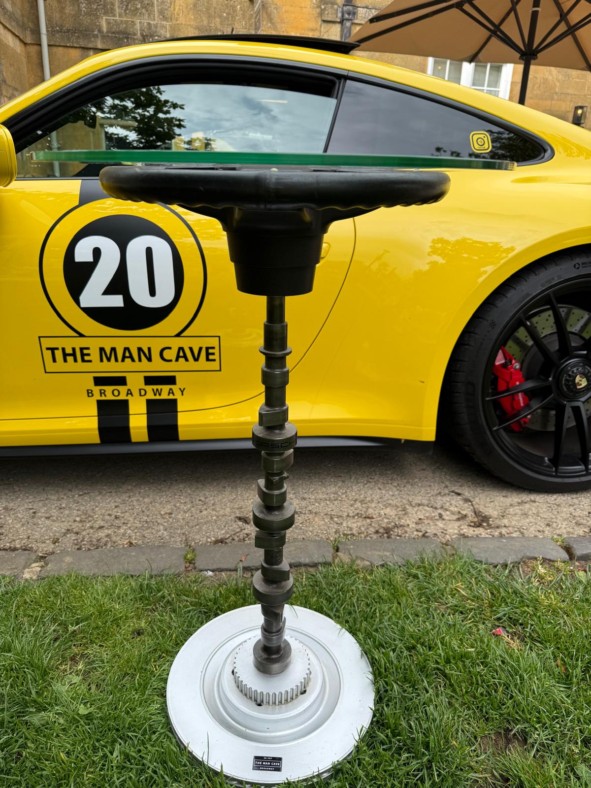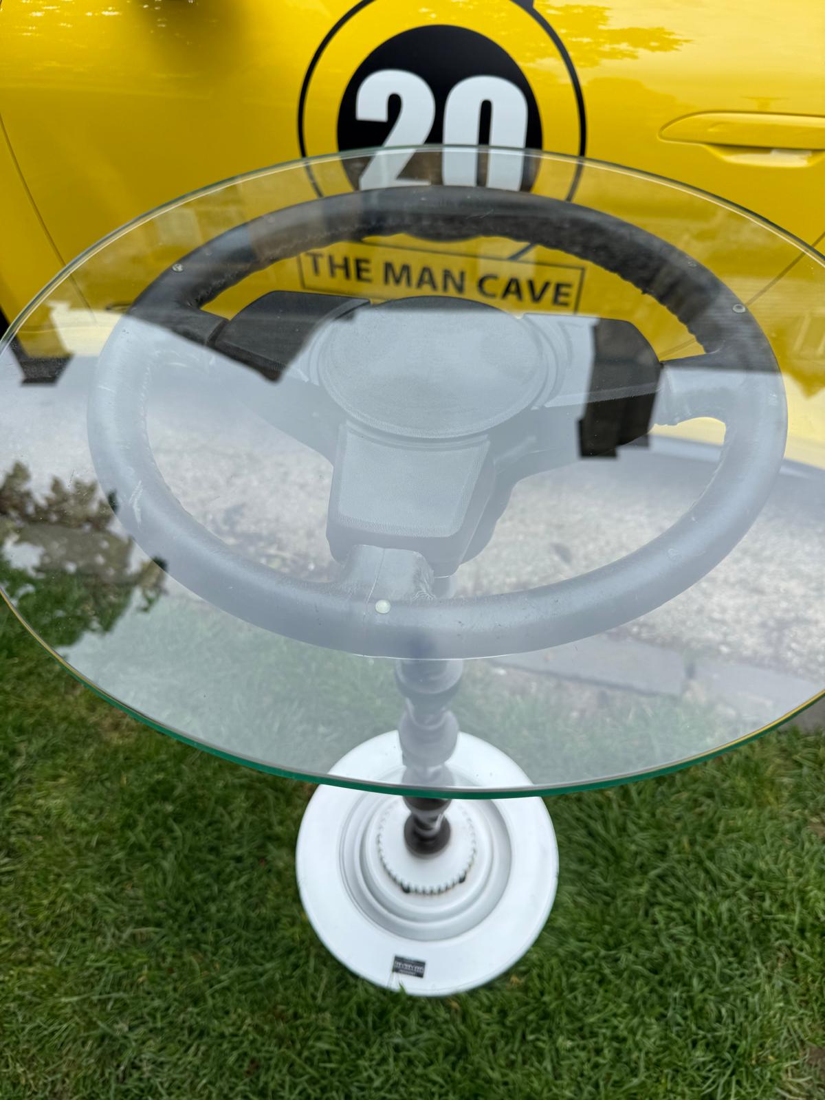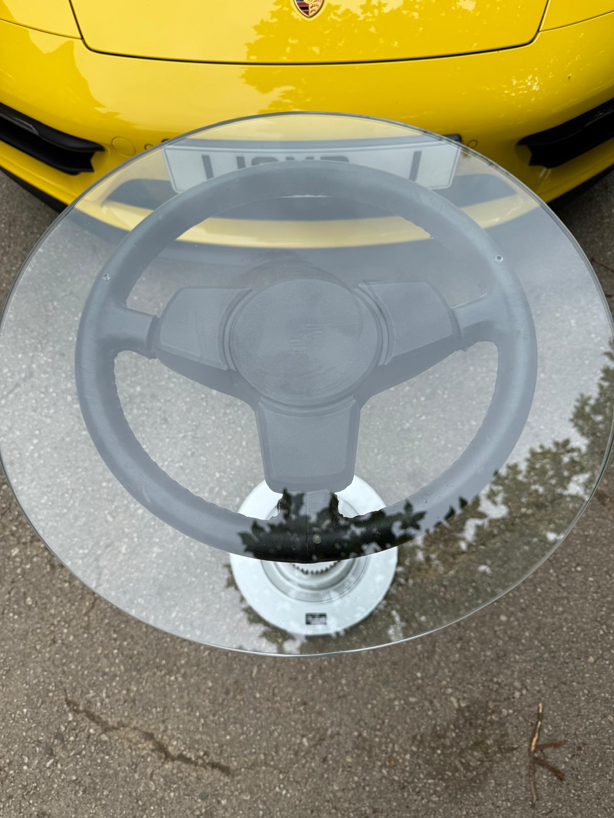 "Rev up your living space with the Genuine Porsche 911 Steering Wheel and Camshaft Table. Guaranteed to add a touch of sporty luxury to any room, this unique piece features the iconic G Series steering wheel and camshaft for a sleek and stylish look. The perfect addition for any Porsche enthusiast (or anyone with good taste)!"