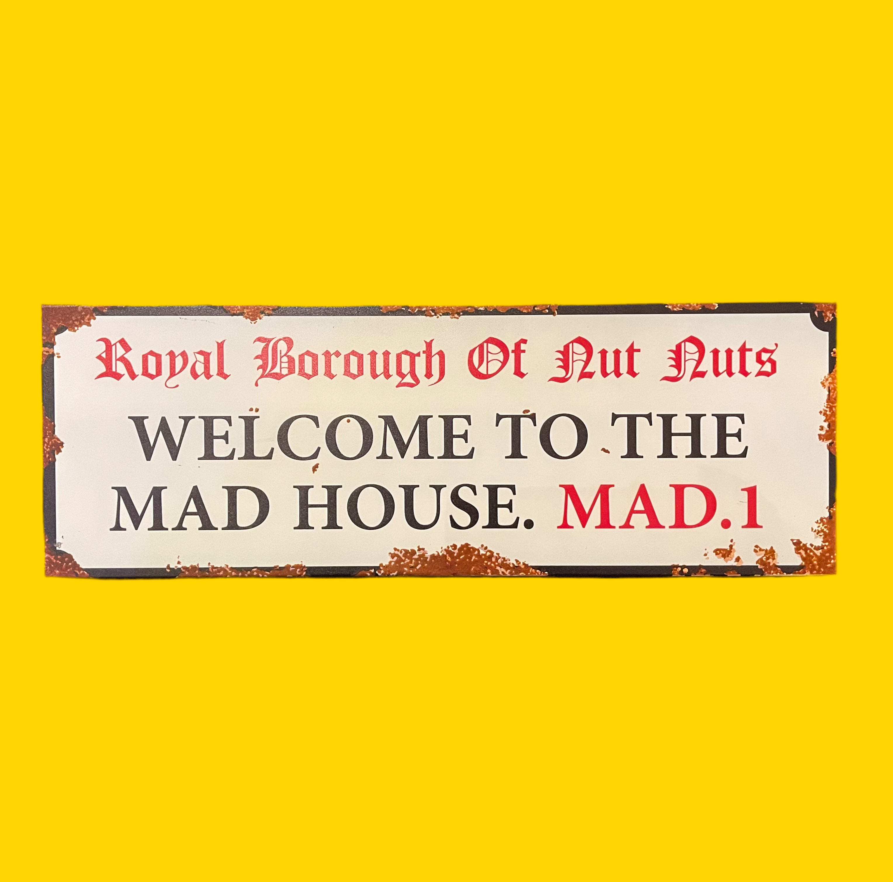 Get ready for some mad fun with this metal sign for your home. Embrace the chaos of daily life and add a touch of whimsy to your decor with our mad house sign. Perfect for those who don't take themselves too seriously. (But seriously, it's a great addition to any room.)