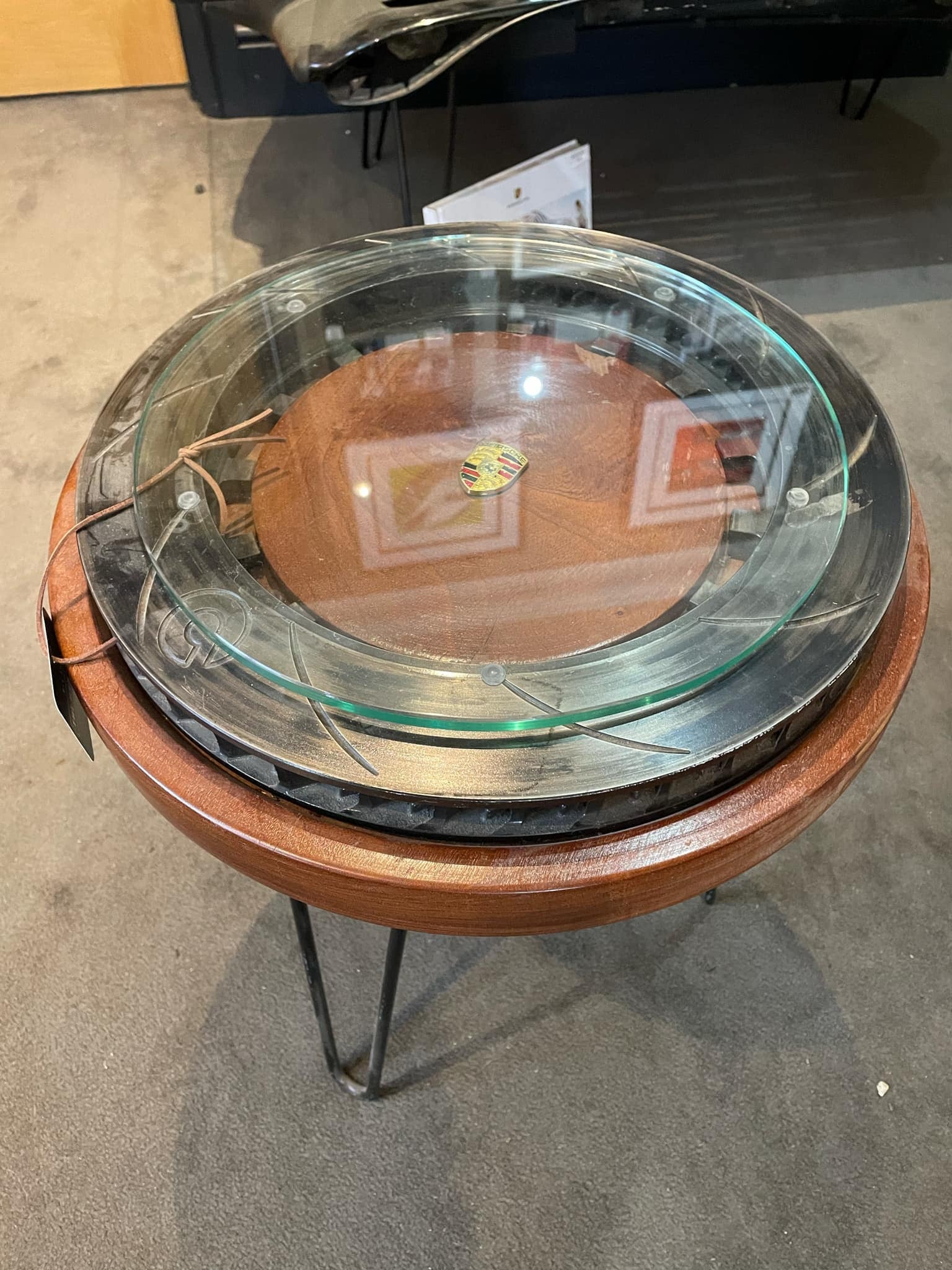 Mounted on to table Transform your living space into a sophisticated showroom with the premium craftsmanship of a Porka BRAKE DISC TABLE / ART WORK.