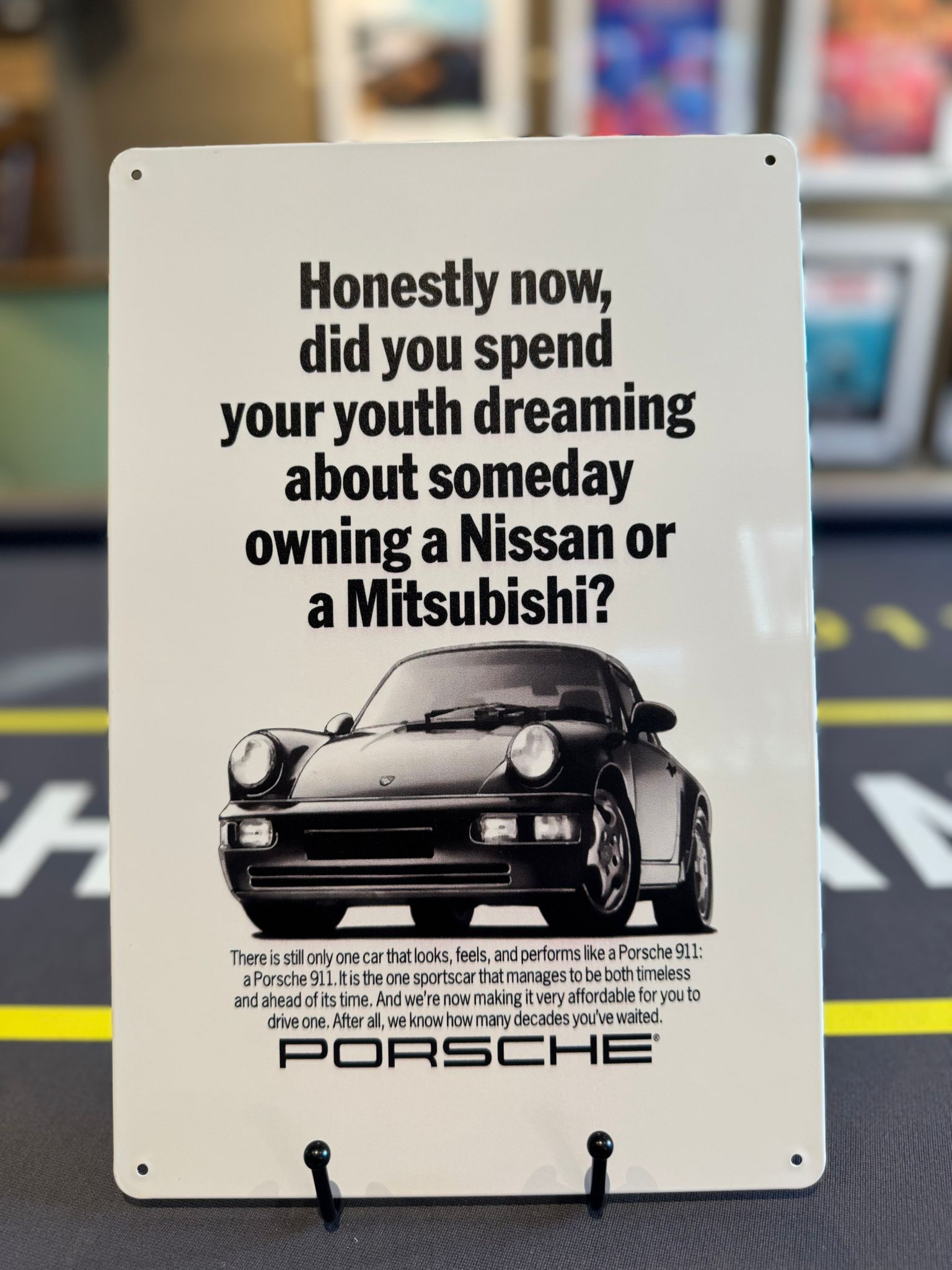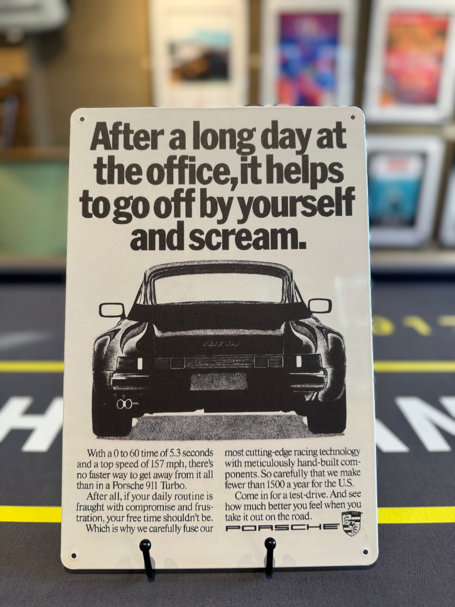 These high-quality tin signs featuring classic Porsche ads are the perfect way to do it.